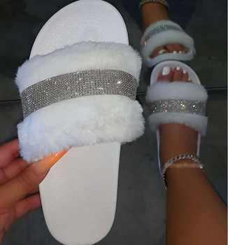 Kadın kış moda kapalı kabarık peluş terlik yumuşak alt beyaz kapalı ev için terlik bahar sezonu için